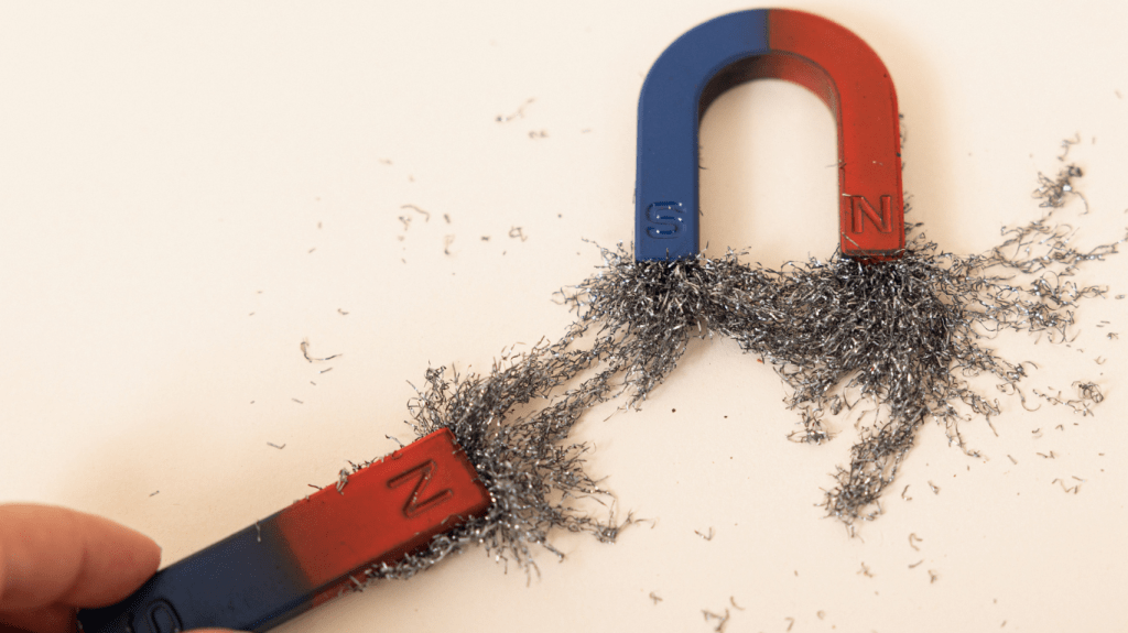 - Ferromagnéticos: Na ausência de um campo magnético externo (H), esses materiais possuem momentos magnéticos alinhados dentro de certos domínios. Aplicando-se um campo magnético externo (H), os dipolos dentro dos domínios magnéticos se alinham no mesmo sentido de H, gerando uma magnetização. Quando o campo externo é desligado, o material não volta a se desmagnetizar espontaneamente. Para desmagnetizar tais materiais é necessário aplicação de campo, ou agitação térmica, ou pressão mecânica, etc. (Ex: ferro, cobalto, níquel, FeNi).