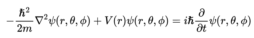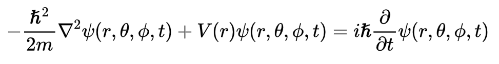 A equação de Schorodinger dependente do tempo (ESDT), em 3 dimensões, em coordenadas esféricas (r, θ, φ) para uma partícula sujeita a um potencial V(r) é dada por: