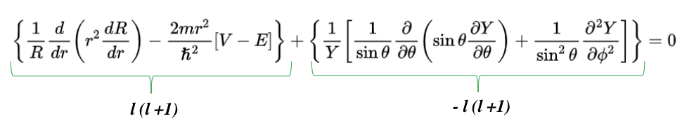 Aqui podemos nomear o primeiro e o segundo termo da equação como: l(l+1) e – l(l+1) e assim, note que a igualdade continua valendo: