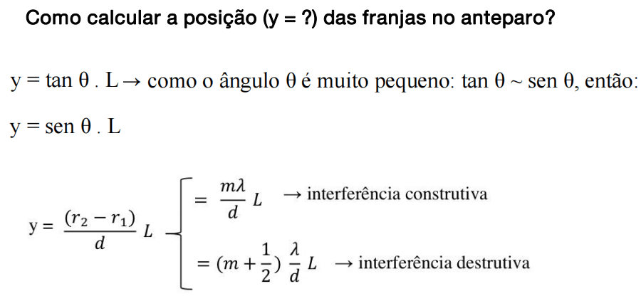 Devido a interferência de ondas luminosas, surge em um anteparo um padrão de franjas. A posição das franjas de interferência no anteparo (y ou ym) pode ser expressa matematicamente por: